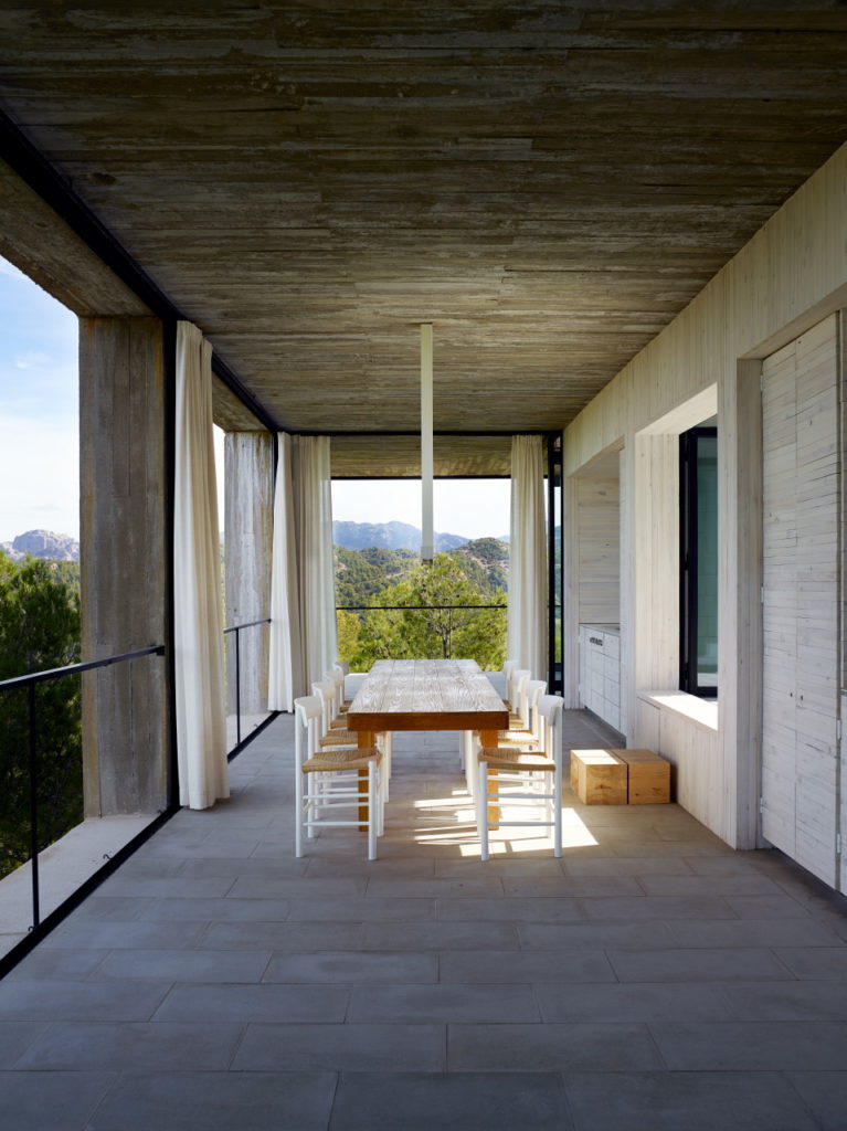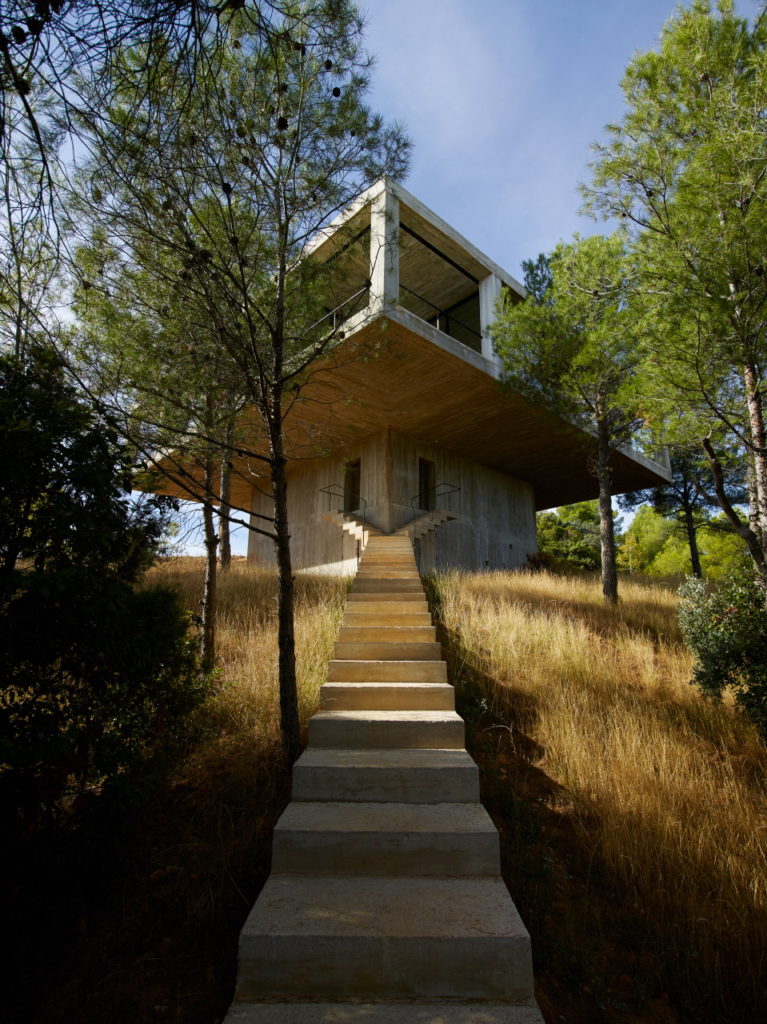 La casa diseñada por el despacho chileno Pezo von Ellrichshausen es una plataforma que parece flotar sobre el paisaje, proporcionando un privilegiado mirador del parque natural.